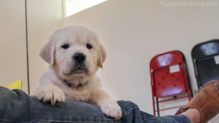 UPDATE: Guide Dogs of America starts working with new puppies before they go home with their puppy raisers in their Puppy Head Start program. However, every puppy will have a different start. Make sure you talk to the breeder, rescue organization, shelter, or whoever was last taking care of your puppy. Find out as much information about how your puppy was raised before he/she goes home with you.