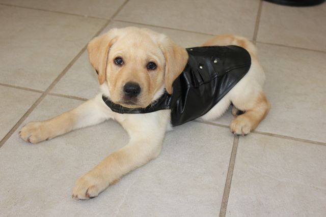 I’m not really sure what kind of bumble bee that is…maybe a Golden Retriever? Whatever he/she is she sure is a cutie! Actually we put the bumble bee outfit on Stetson when he was a puppy. Unfortunately, he was a 6 month old puppy and didn’t exactly win the cuteness award like this little guy.