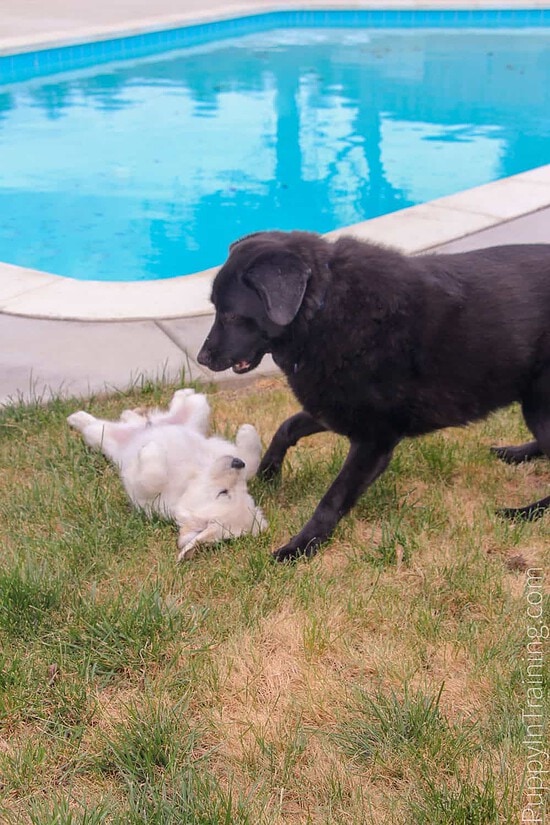 When puppies got crazy and out of control he let them know it was inappropriate.