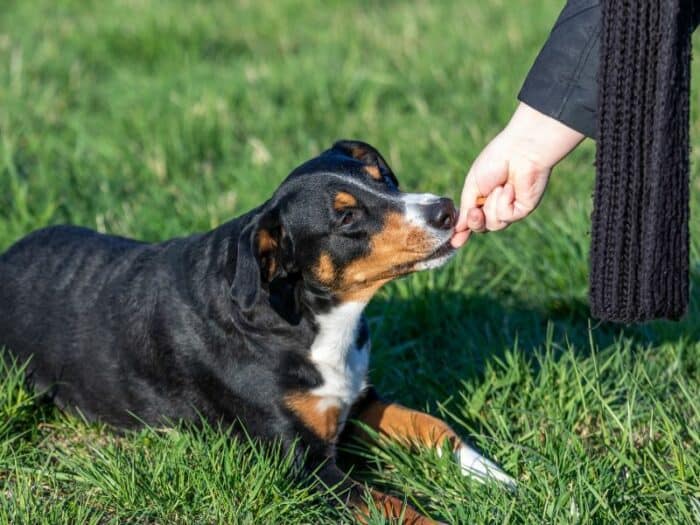 The most common form of positive reinforcement is the use of training treats. But you can use this technique with nearly anything your dog views as valuable.