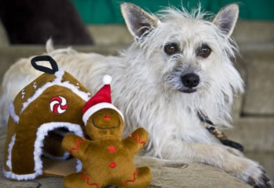 For those of you who’ve been following along here on the blog you may remember my post about the Ginger Bread House Puzzle Dog Toy. I thought these would make great Christmas gifts and ordered several Gingerbread House Puzzle Dog Toys from Amazon.com. I gave one to my parents dog, a 12 pound Cairn Terrier named Ralphie. Check out the picture below: