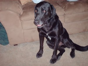 Here is a picture of my male black and tan lab. He was born 1-29-2009 and he is out of a litter of 10; he is 5