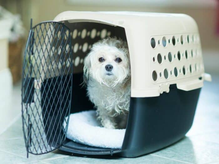 For obvious reasons, your dog’s travel crate can’t have any wheels.